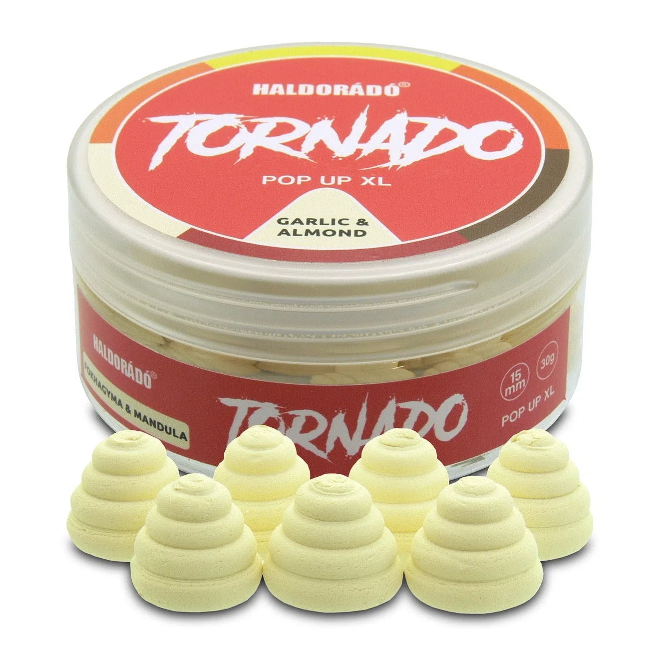 A TORNADO Pop Up XL egy különleges formájú, rendkívül attraktív, főzött, lebegő csali, amely napokig képes a vízben megőrizni formáját és lebegőképességét, miközben folyamatosan áramoltatja ki magából vonzó ízét és aromáját, de nem füstöl!
